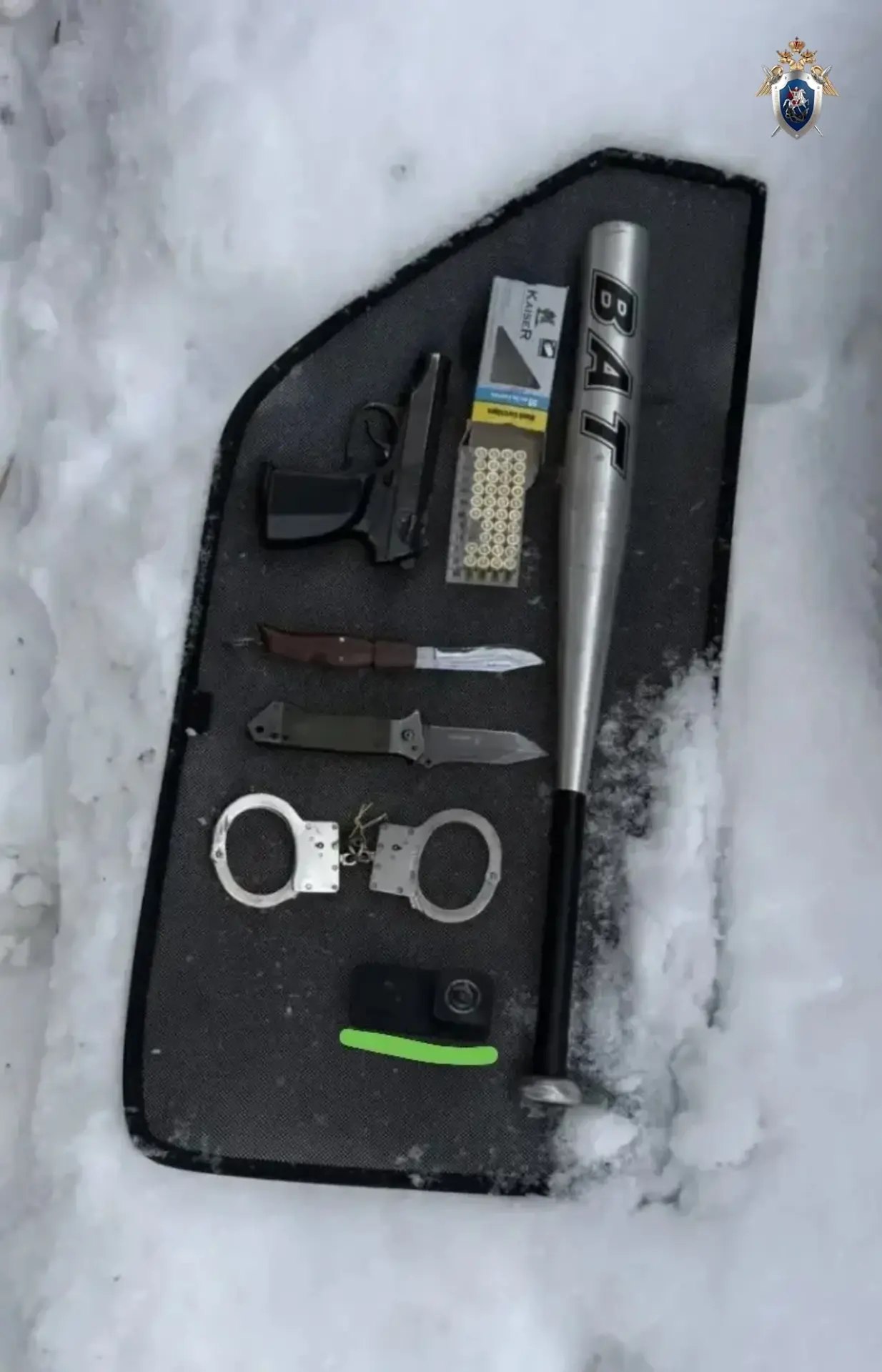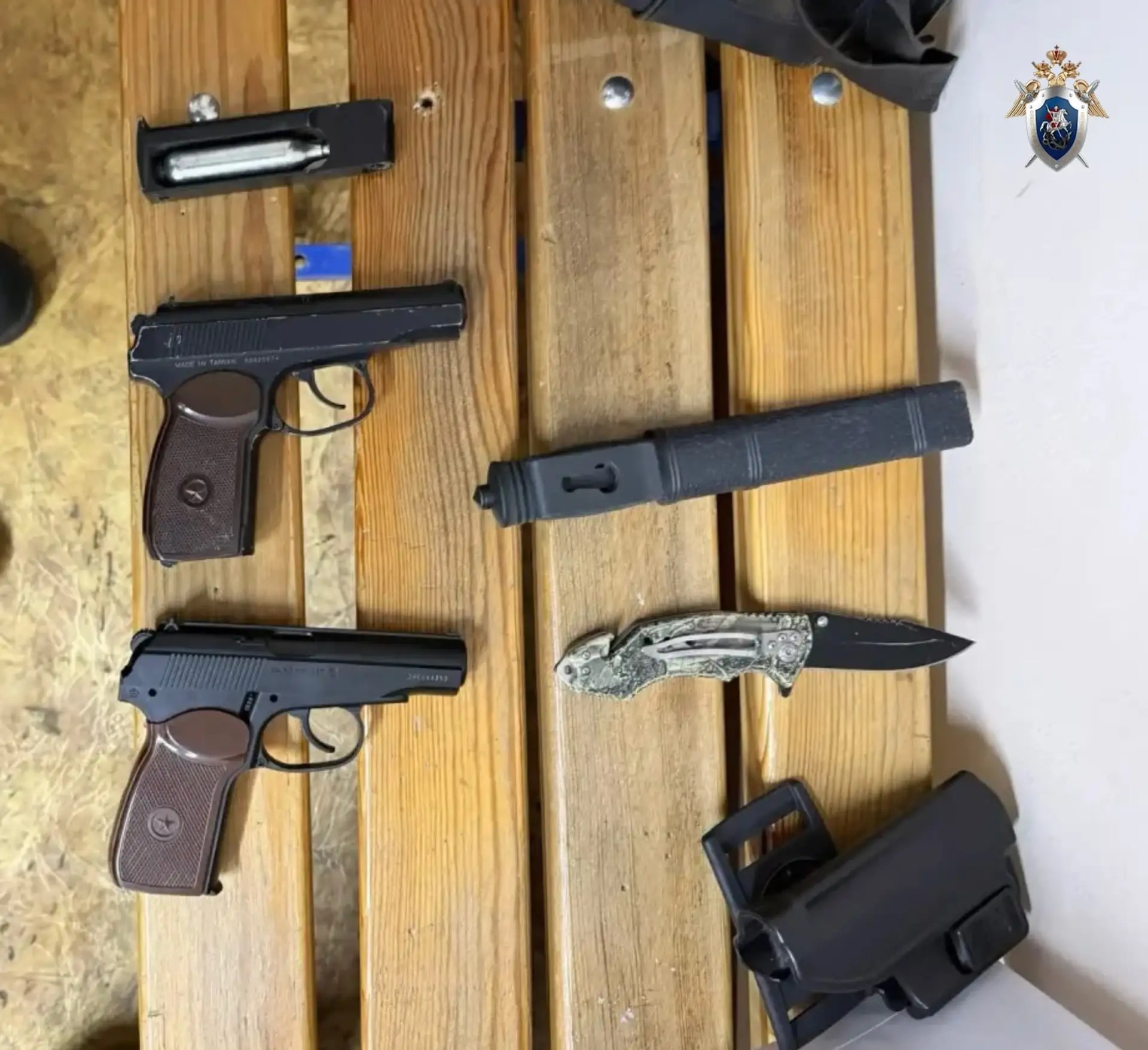 В ходе обыска по местам жительства и в автомобилях фигурантов изъяты ножи, ручные браслеты, биты, шумовые и травматические пистолеты и патроны к ним, перцовые баллончики, муляж гранаты и иные предметы.