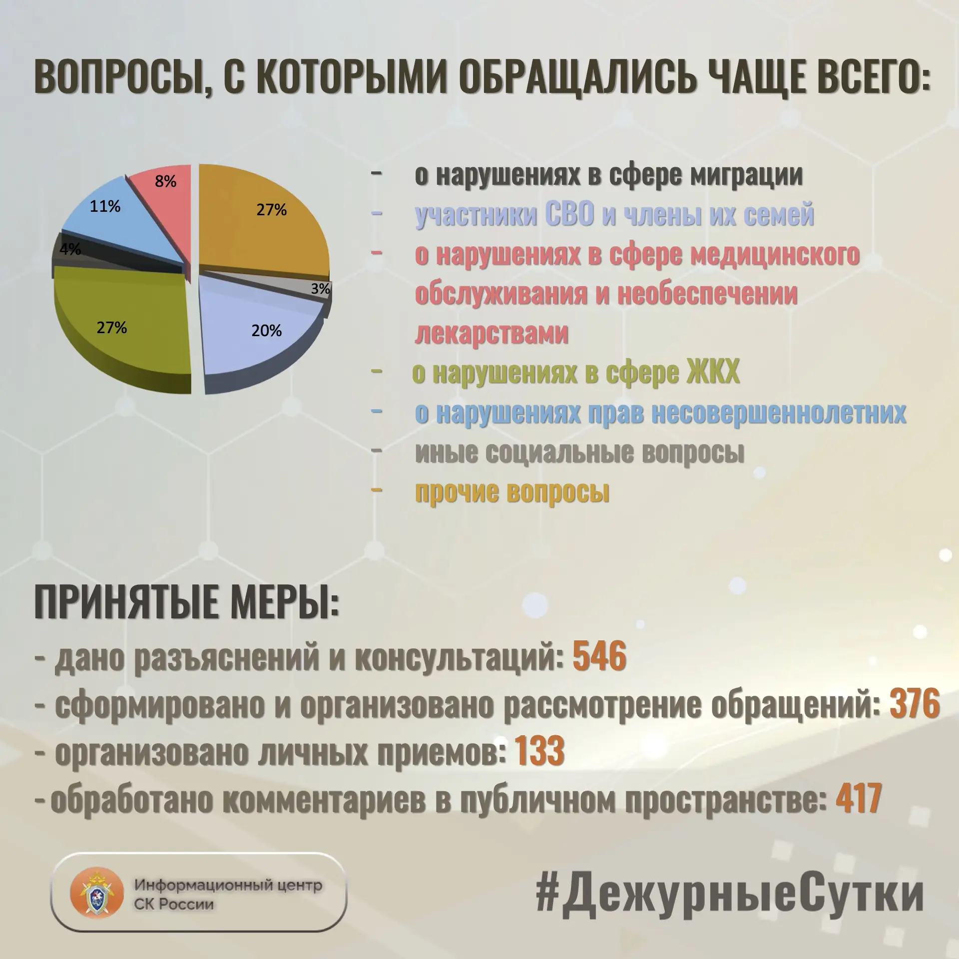 В Информационный центр СК России за прошедшие сутки всего обратилось граждан: 922