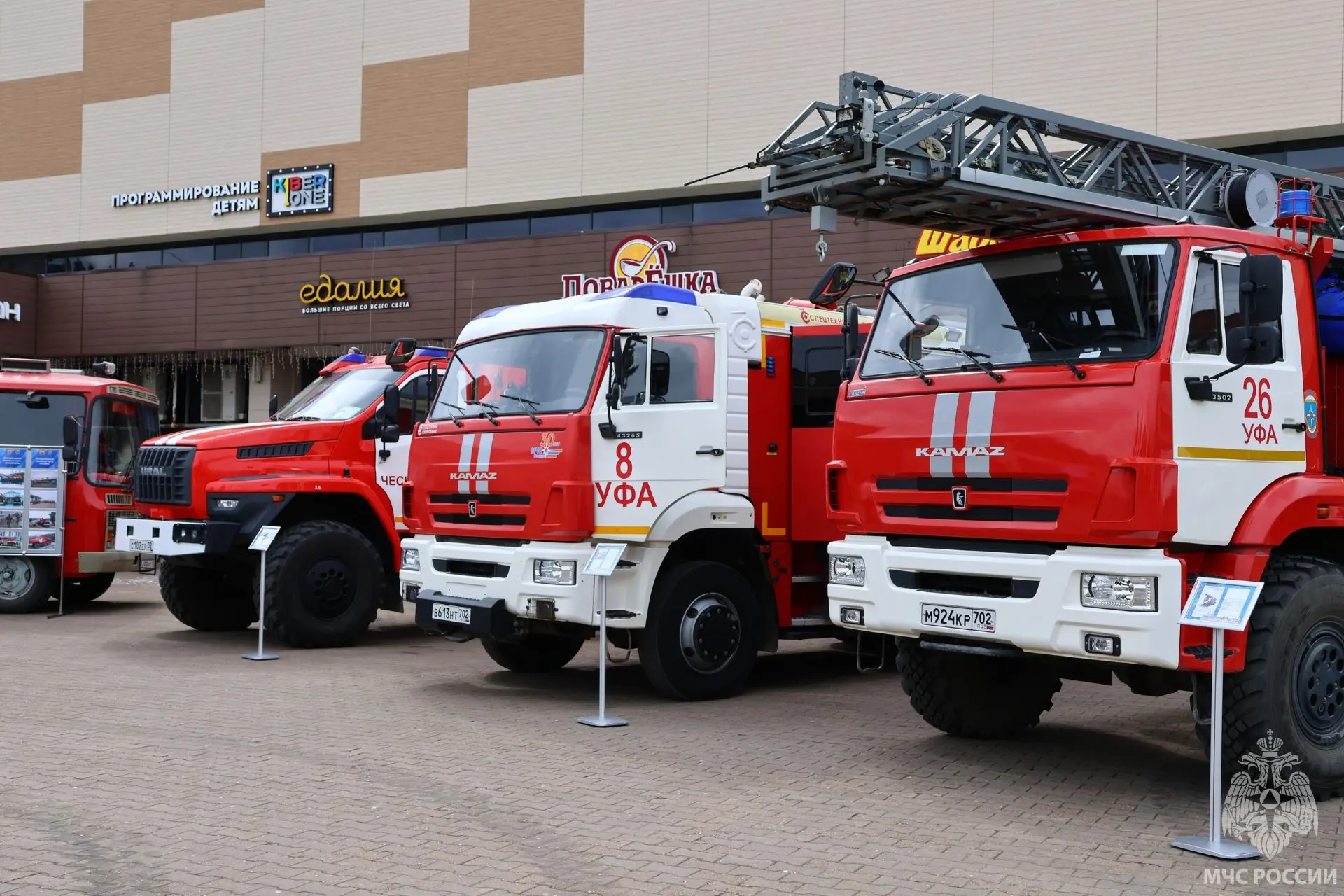 Буквально на несколько часов площадка стала домом для мобильной выставки пожарной техники, где раритетные автомобили соперничали за внимание с современными образцами пожарного вооружения. С приветственным словом к собравшимся обратился временно исполняющий обязанности заместителя начальника Главного управления МЧС России по Республике Башкортостан Ленар Вахитов. Он подчеркнул уникальность проводимой выставки: в каждой спецмашине можно посидеть, сделать селфи, узнать, что внутри и как это работает, а главное — для чего предназначается.