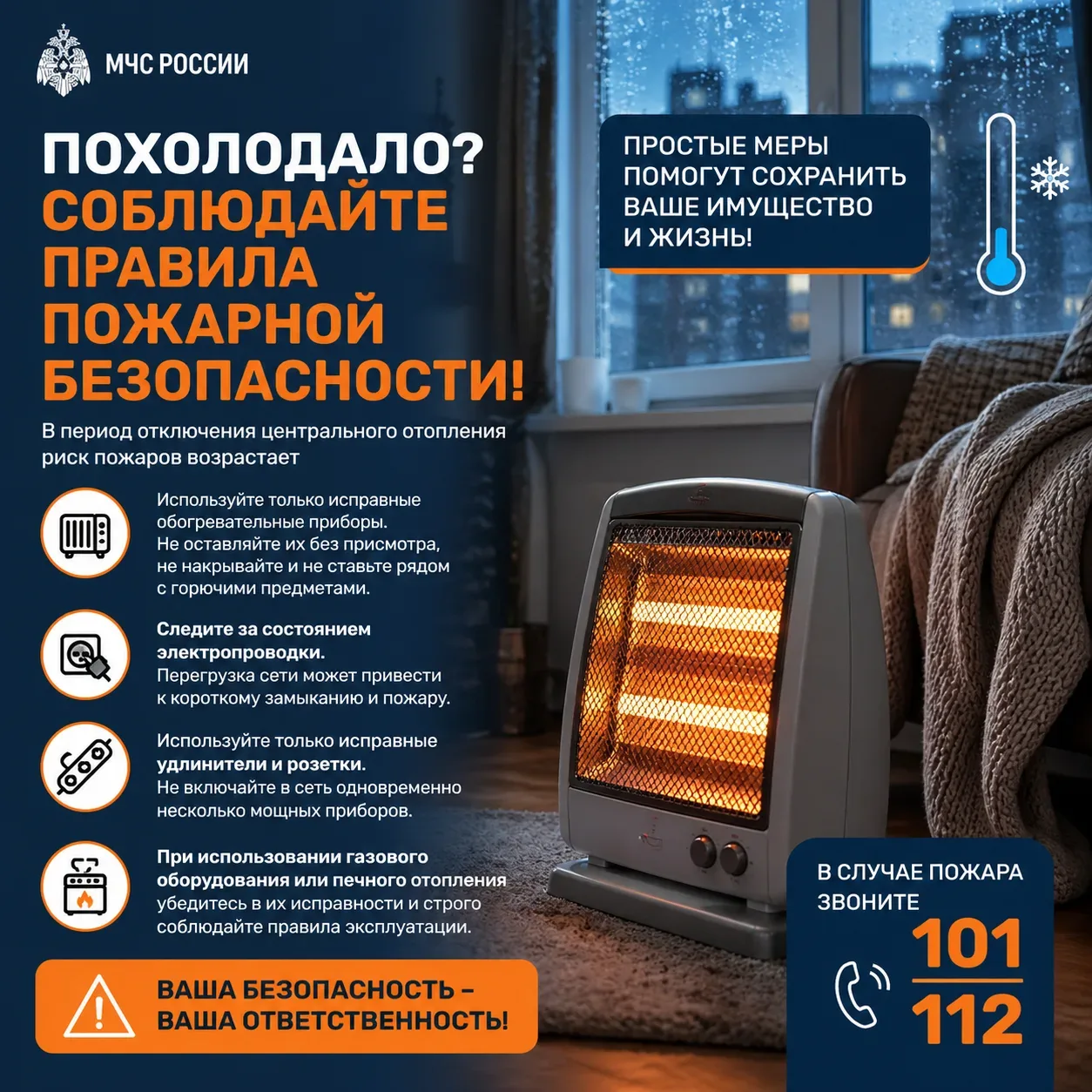 Когда в домах отключают центральное отопление, а погода внезапно становится холоднее, резко возрастает риск бытовых пожаров. В этот период особенно важно соблюдать правила пожарной безопасности.