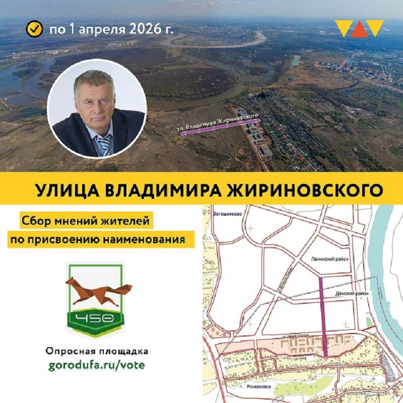 В Уфе не будут возвращаться к прежним вариантам названия улицы в честь Владимира Жириновского. В прошлый раз опрос показал расхождения во мнениях.