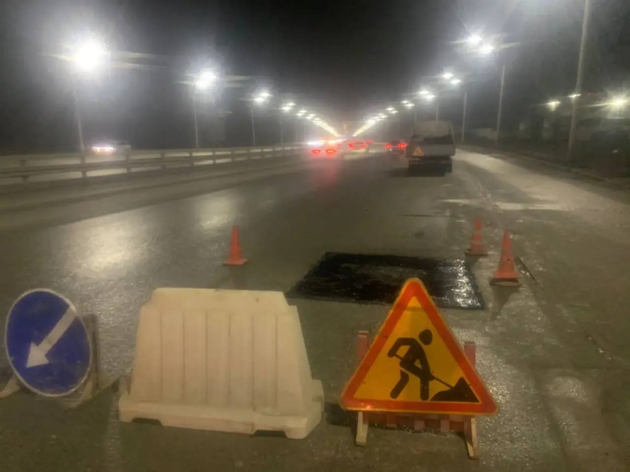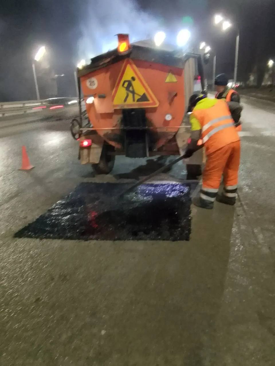 Аварийные ямы ремонтируют с помощью литого асфальта. Этот метод позволяет быстро восстановить дорожное покрытие. После завершения работ службы устанавливают ограждение вокруг отремонтированных участков