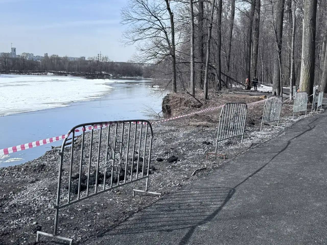 В связи со сложившейся паводковой ситуацией, произошло размытие берега реки Уфа и обвал грунта возле тропы «Теплая» в районе гребного канала в Инорсе