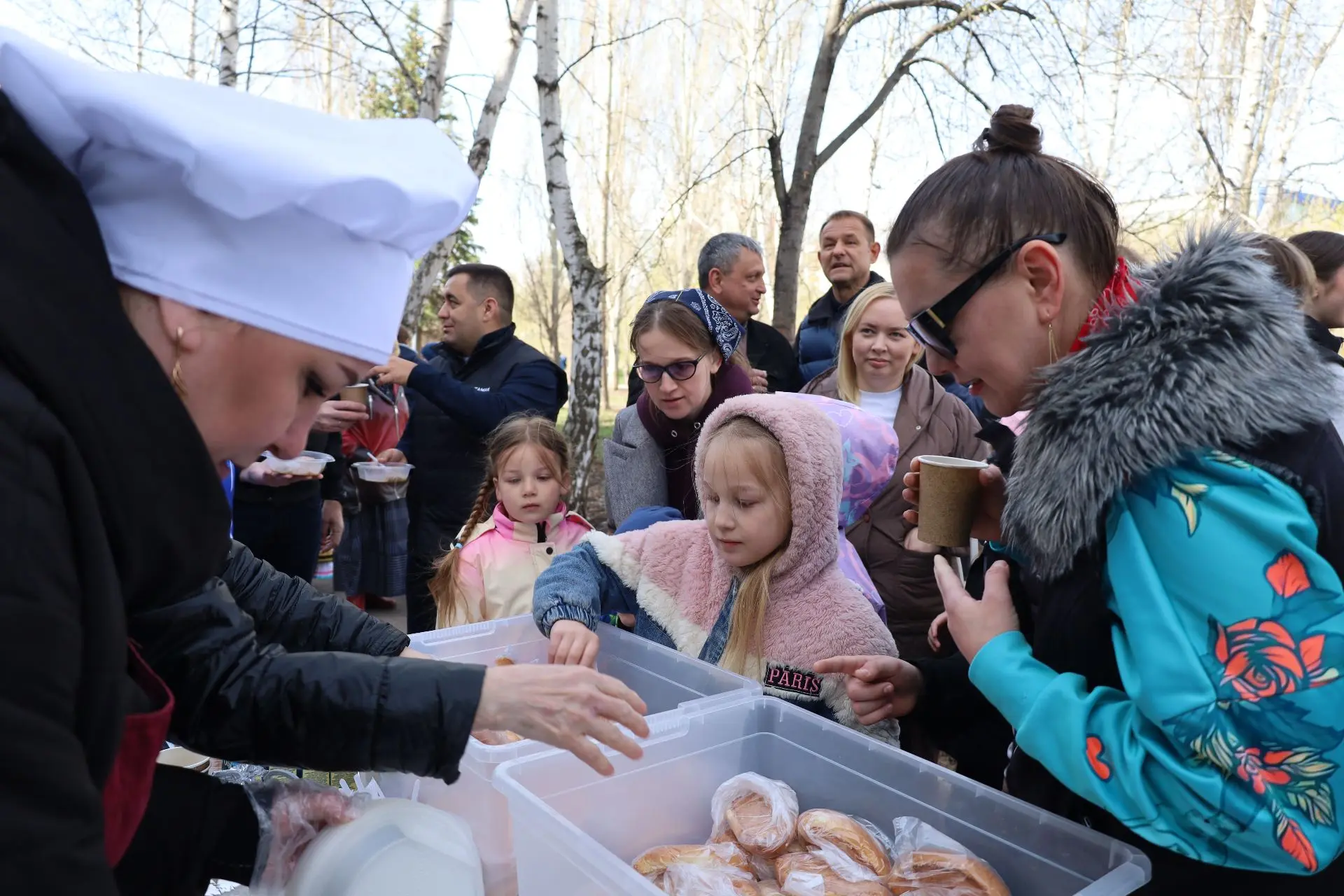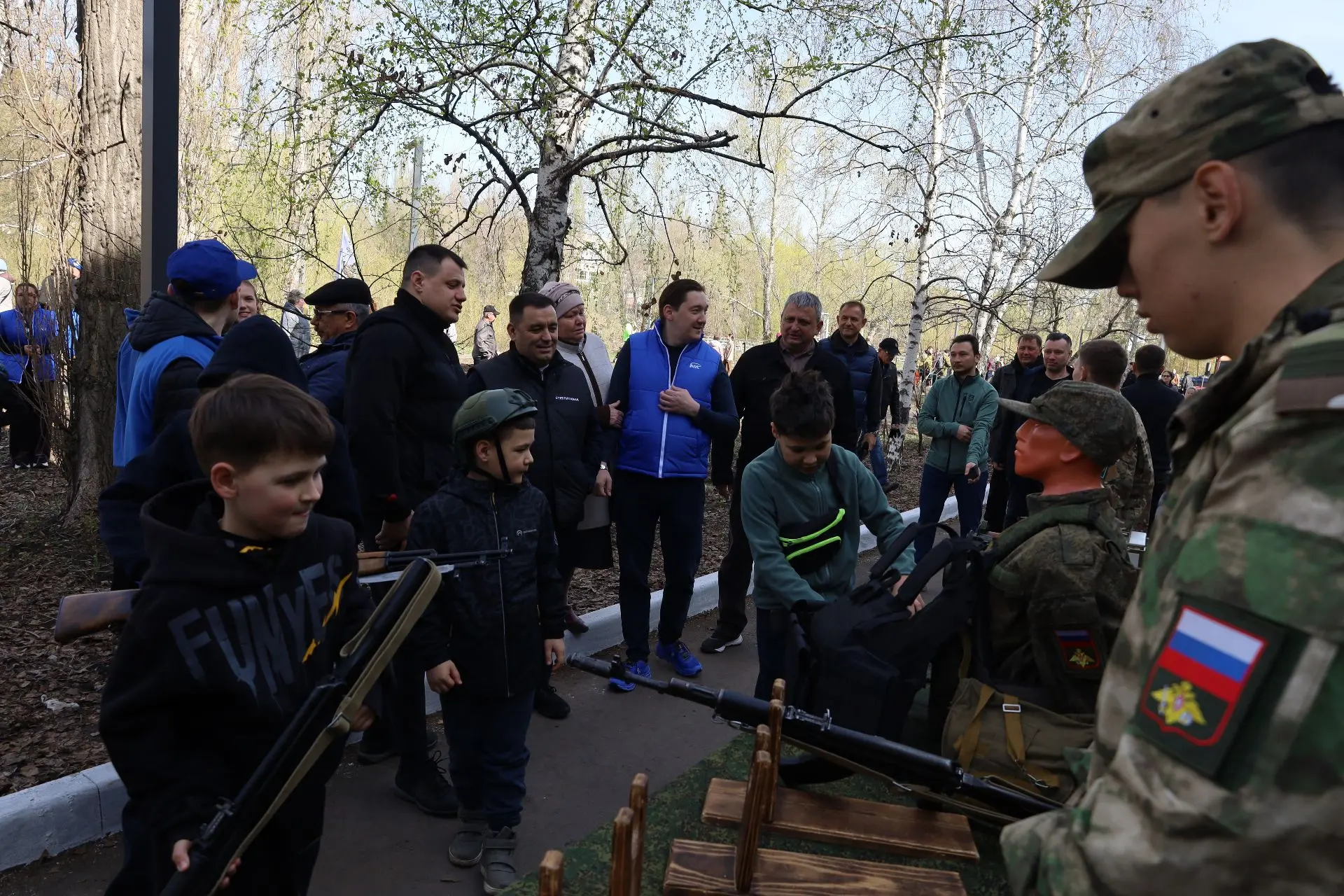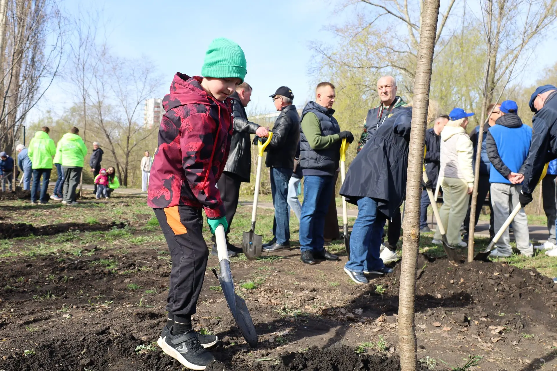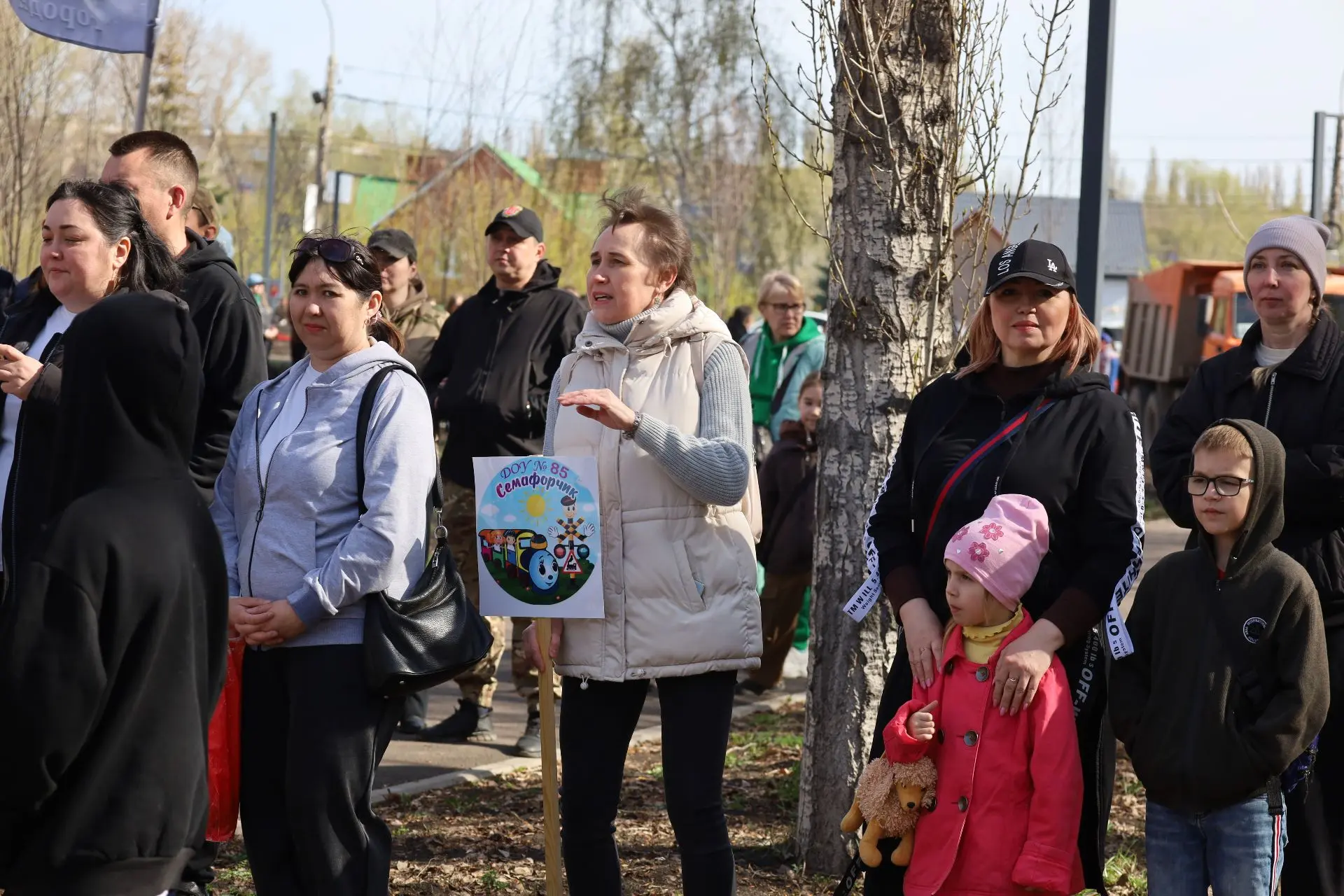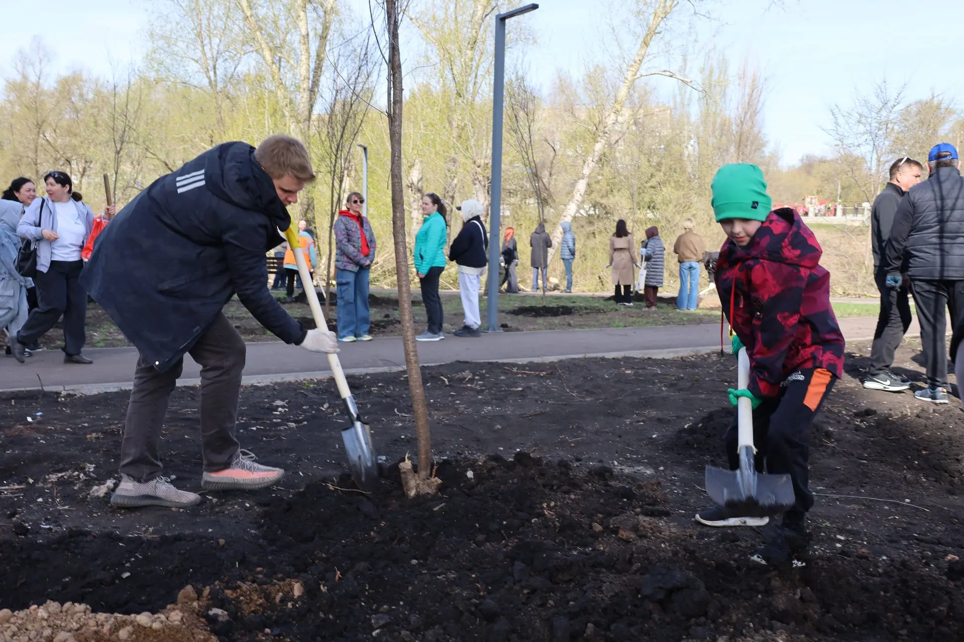 Посадка деревьев проходила в праздничной атмосфере. Её создавали творческие коллективы города. Всех участников угощали кашей и горячим чаем. Работала и патриотическая выставка от ВПО «Отечество».