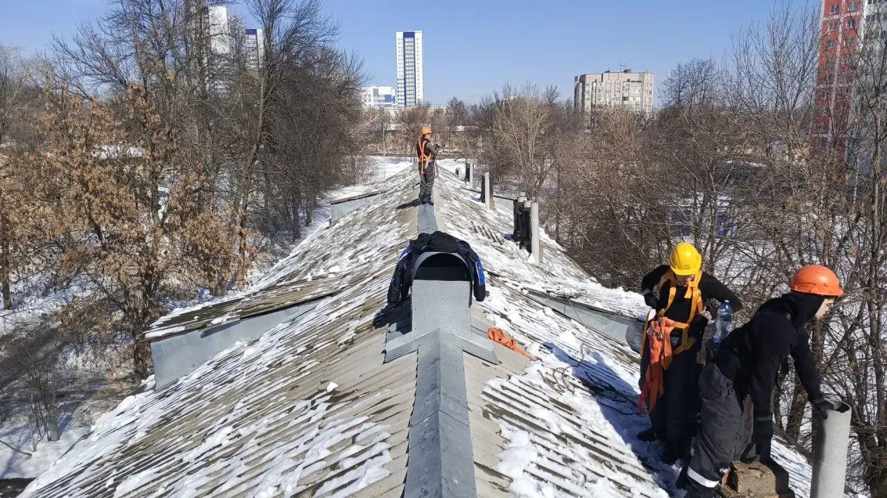 Коммунальные службы Уфы активно очищают крыши жилых зданий, строго соблюдая правила техники безопасности