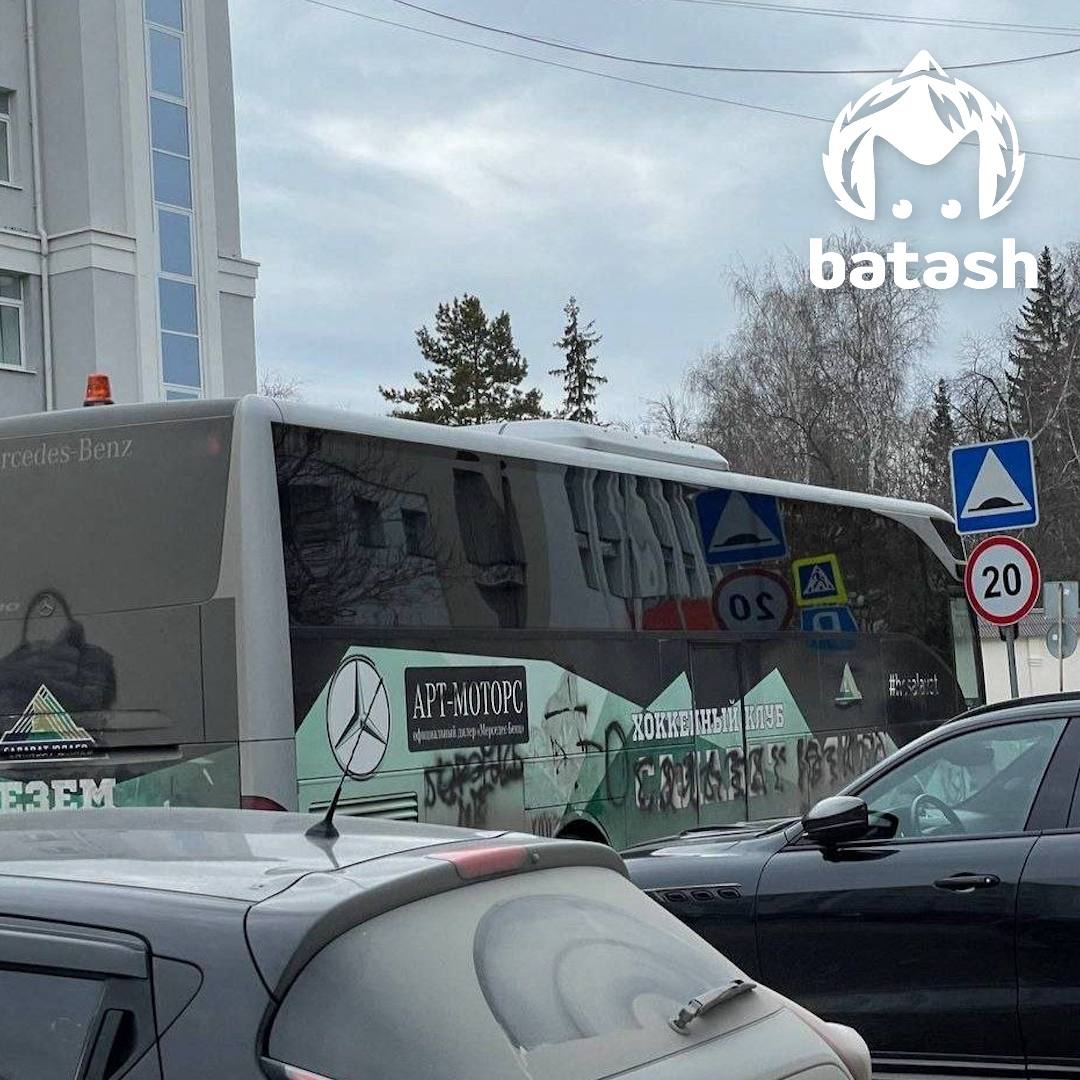 Хейтеры разрисовали автобус молодёжки "Салавата Юлаева" в Екатеринбурге, пока команда была на матче.