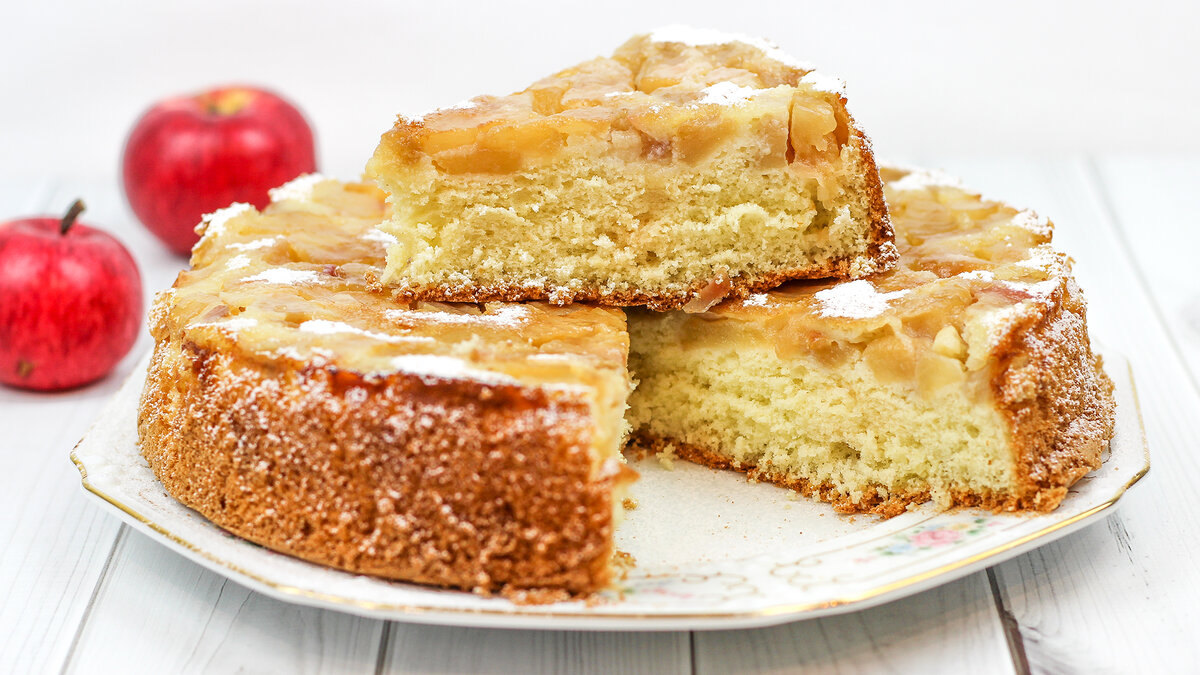 Формирование и выпечка: Подготовьте разъемную форму — смажьте её сливочным маслом и слегка присыпьте мукой. Выложите нарезанные яблоки на дно формы и залейте их тестом. Выпекайте в разогретой до 180 градусов духовке. Проверяйте готовность с помощью деревянной зубочистки: она должна выходить сухой, без следов сырого теста. После выпекания дайте пирогу немного остыть и посыпьте сахарной пудрой.
