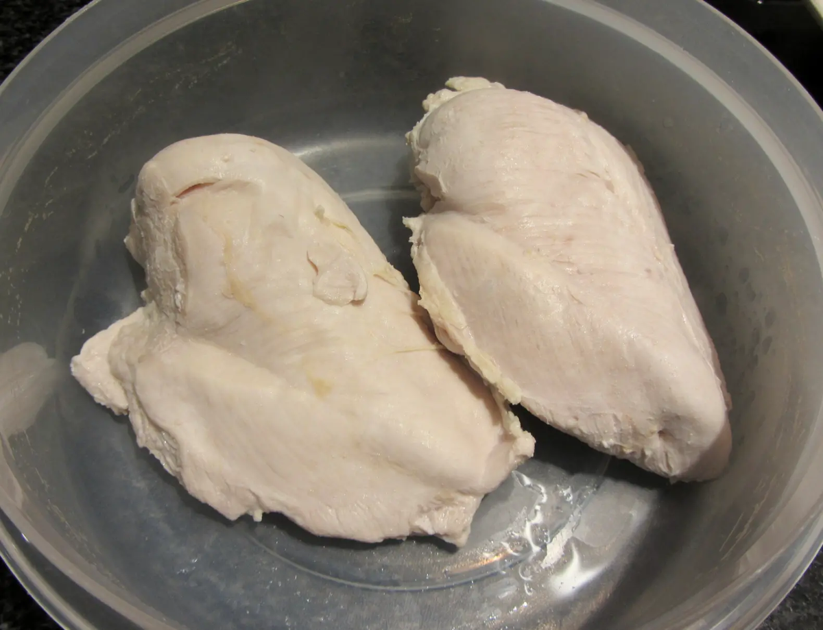 - Когда вода закипит, осторожно погружайте грудку. Важно, чтобы вода была именно кипящей — это сохранит все соки внутри мяса.