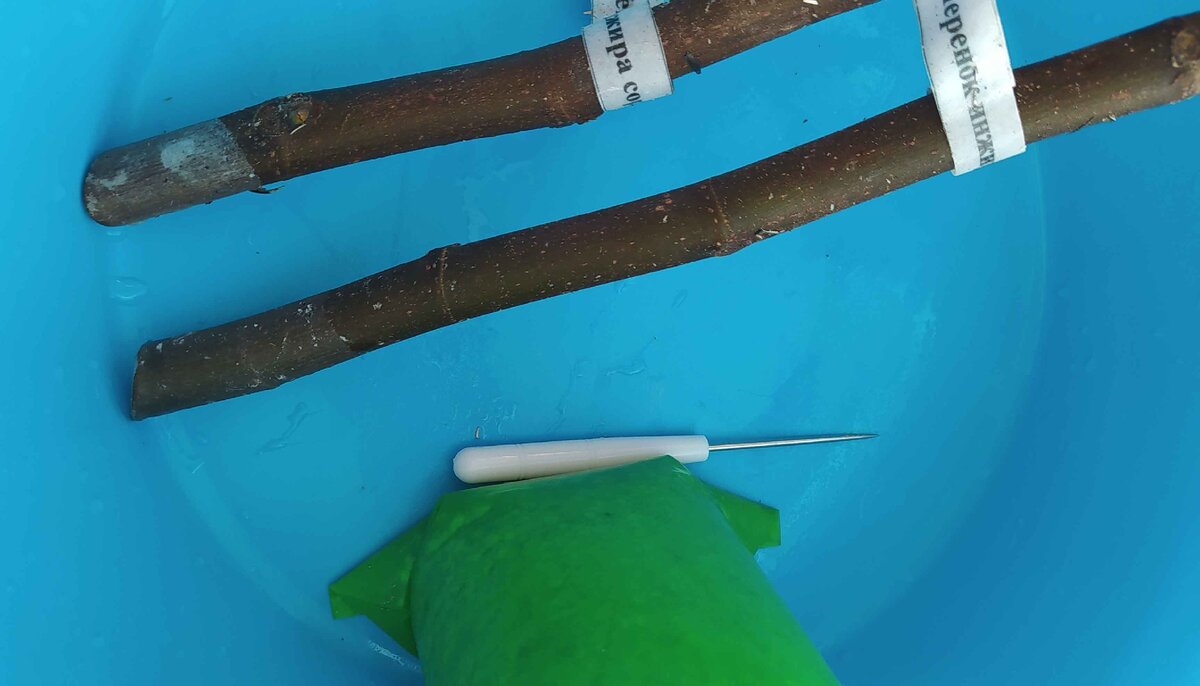 Черенки обрабатывают, удаляя воск и дезинфицируя в растворе марганцовки. Затем наносятся вертикальные царапины на нижний срез для стимуляции корнеобразования, и укрываются верхние срезы воском.