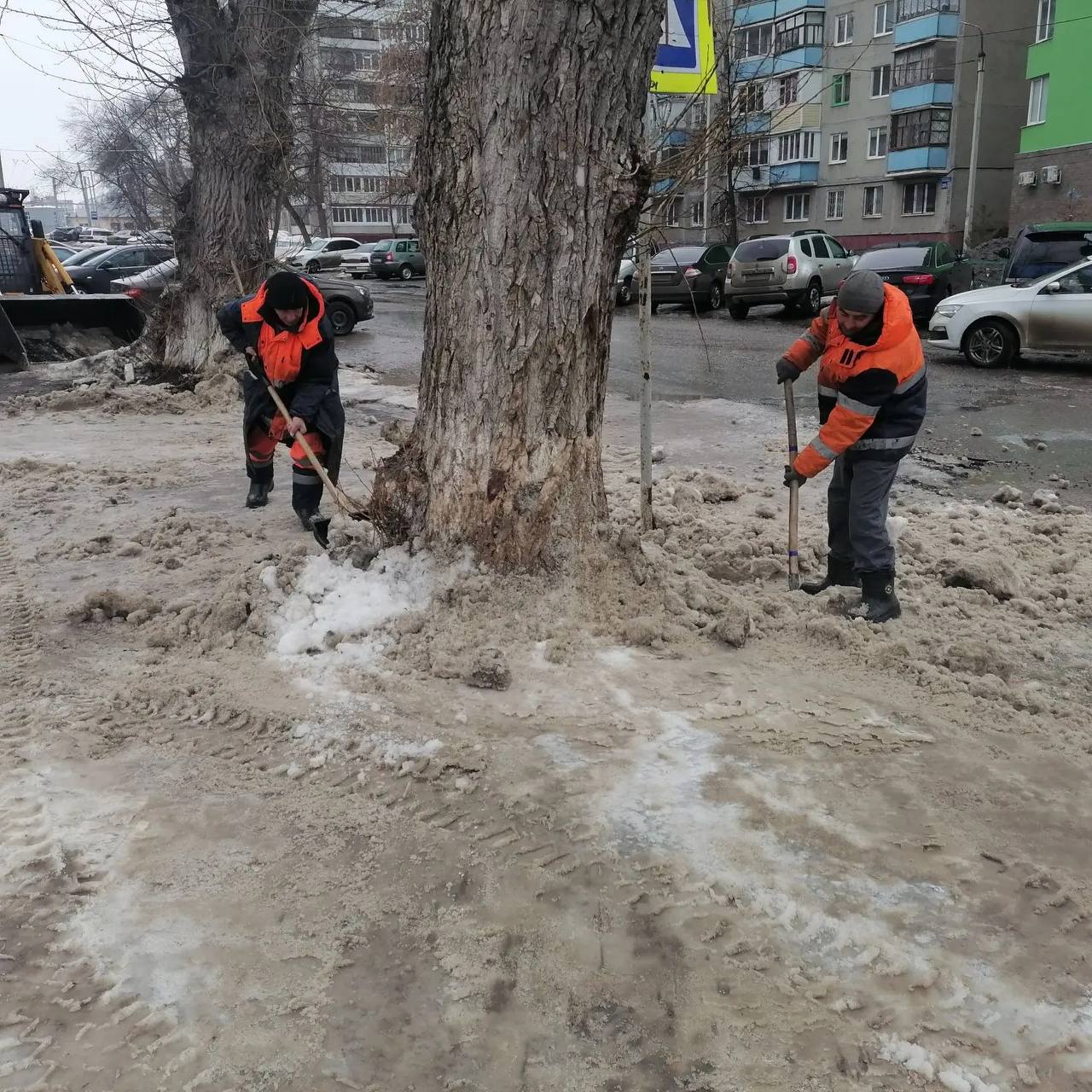 Коммунальные службы уже встают на рельсы летнего содержания, но снег ещё не ушёл. Работают комплексно: