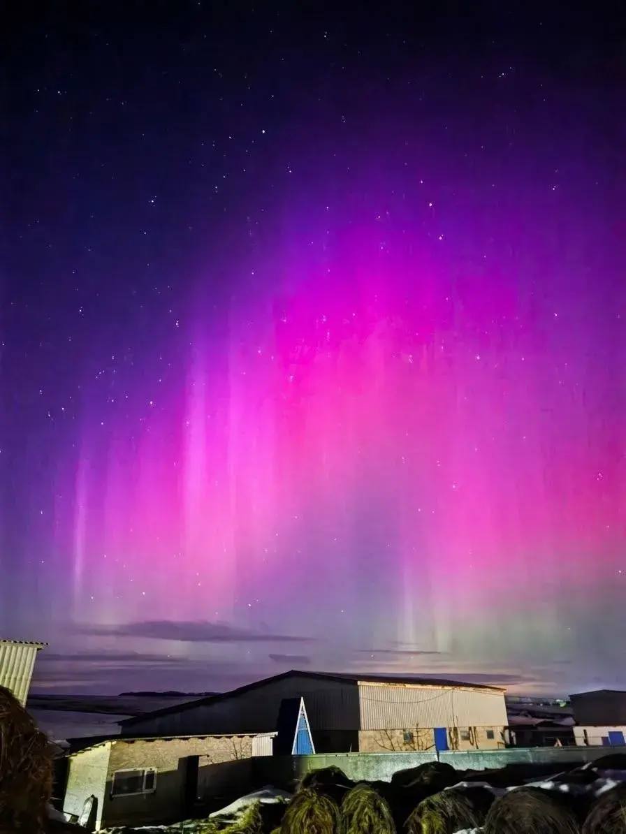 Такое оптическое явление происходит при сильных магнитных бурях либо большой солнечной активности.