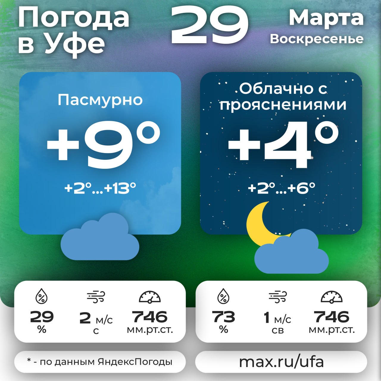 28 марта в Уфе зафиксирован новый абсолютный максимум температуры воздуха — +15,9°. Предыдущий рекорд (+12,3°) держался с 1951 года.Весна 2026-го бьёт все рекорды!