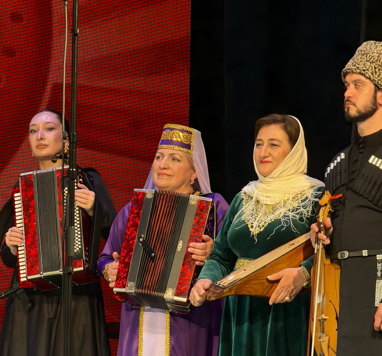 Впервые жители и гости Ставрополя смогли не только услышать на гала-концерте, но и увидеть на выставке редкие инструменты: древнюю адыгскую скрипку шыкэпщын, армянский дхол, греческий даул и понтийскую лиру, глиняные флейты-окарины, старинные казачьи инструменты — колёсный гудок (донской рылей), травяную дудку-калюку, гусли. Это было красиво, душевно, на одном языке, - языке культуры – которому не нужны переводчики.
