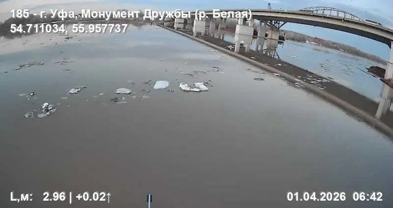 — на реке Уршак у села Камчалытамак Давлекановского района, динамика уровня воды за сутки +97 см, текущий уровень 516 см, неблагоприятный уровень 672 см;— на реке Белой в городе Уфе в районе Монумента Дружбы, динамика уровня воды за сутки +85 см, текущий уровень 294 см, выход реки на пойму 600 см;
