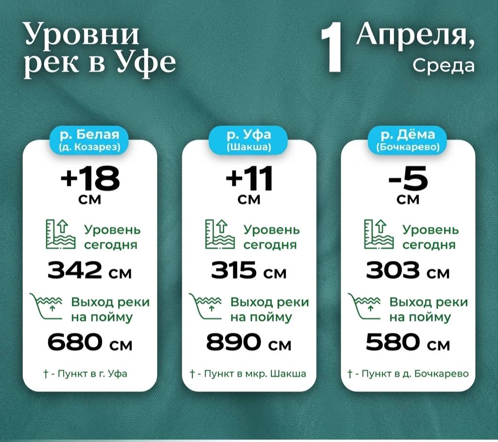 Уровни рек в Уфе на 1 апреля.