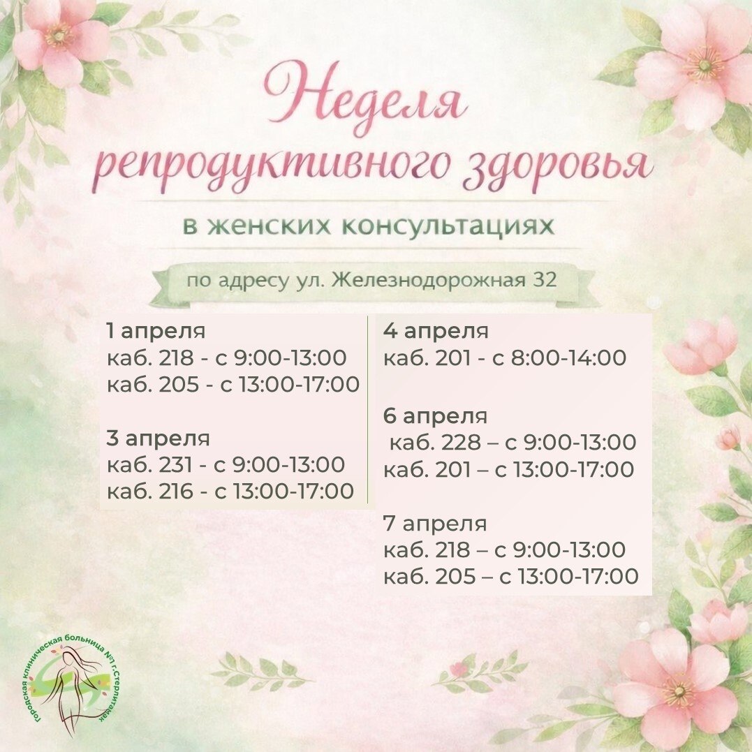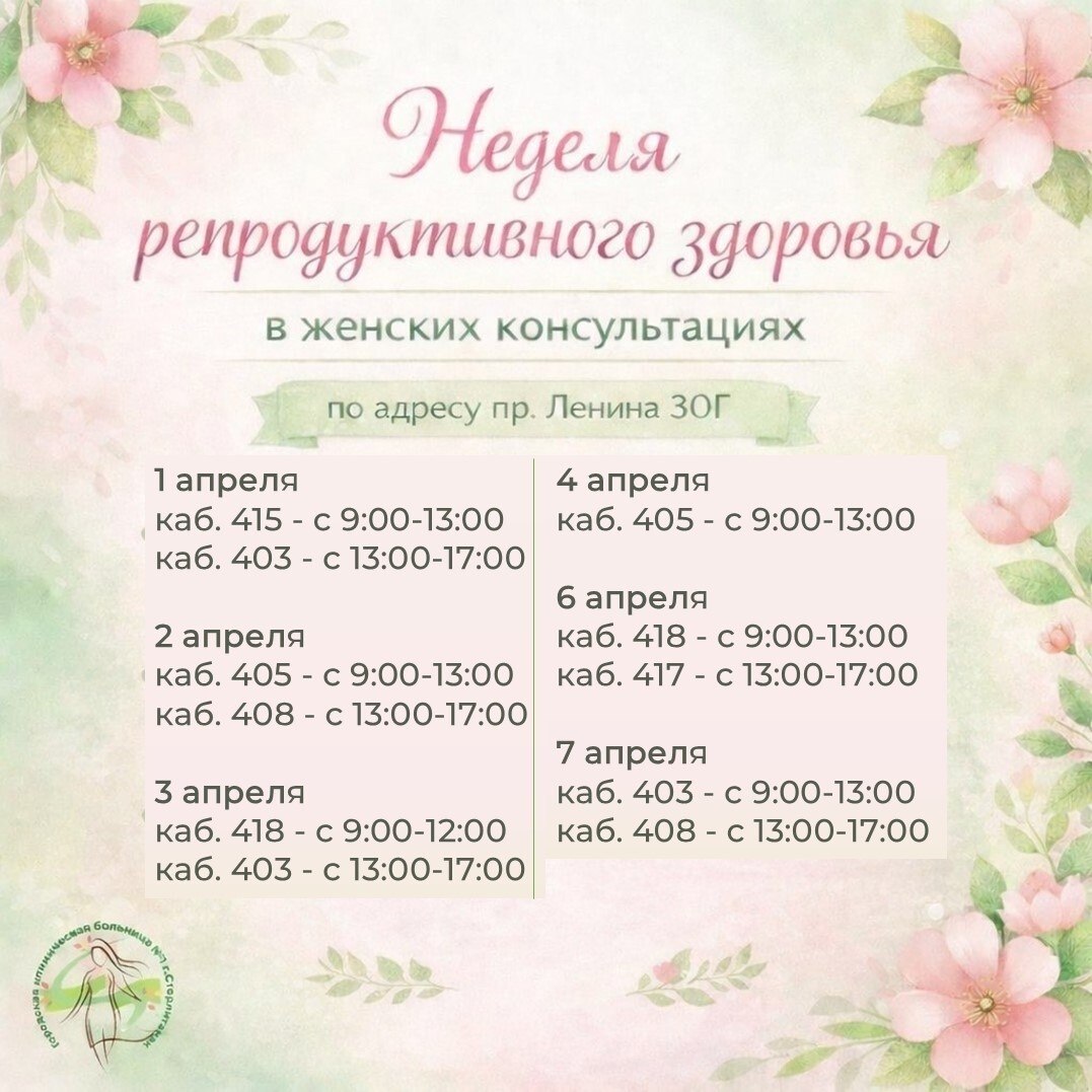 С 1 по 7 апреля женские консультации будут принимать женщин от 18 до 49 лет без записи, согласно графику работы кабинетов.