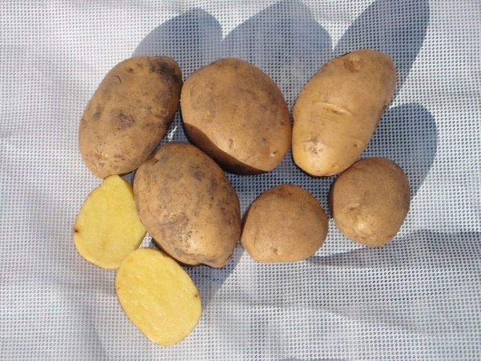 - Форма клубней: правильная овальная форма с массой 84-118 г, удобная для хозяйства.