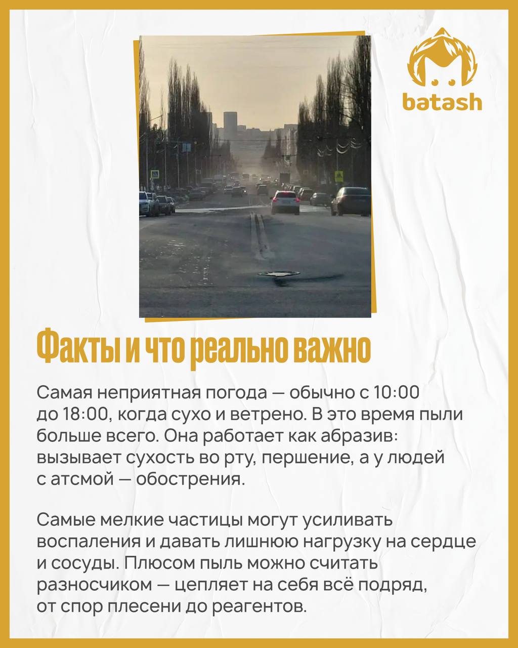 Mash Batash тоже достала пылюга, поэтому мы выяснили, откуда она берётся и насколько опасна для организма. Разобраться помогли учёные УУНиТ — директор Института химии и защиты в ЧС Алексей Елизарьев и доктор медицинских наук Азат Ахмадеев. Читаем карточки и берём на вооружение.