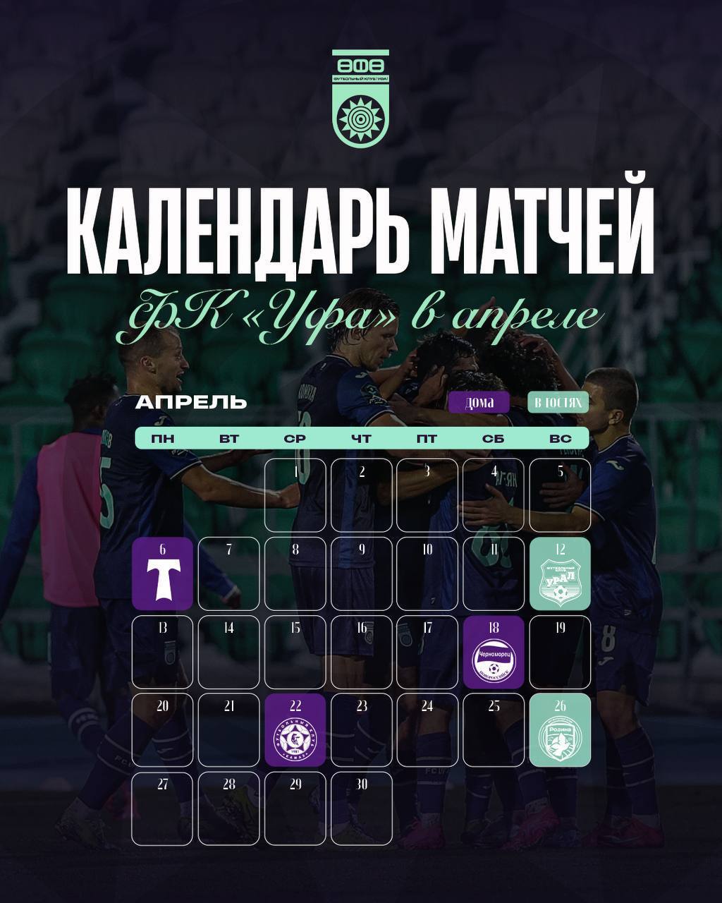 Футбольный апрель. ФК «Уфа» сыграет пять матчей в этом месяце