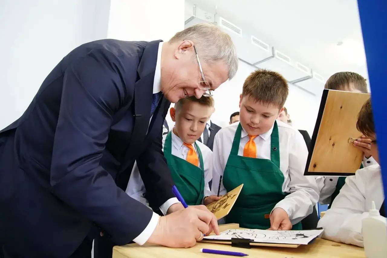 Побывал в недавно открытой школе «Хазина» – 12-й полилингвальной школе республики. Она совмещена с детским садом, и уже с самого раннего возраста детишки говорят на трех языках – башкирском, русском и английском.