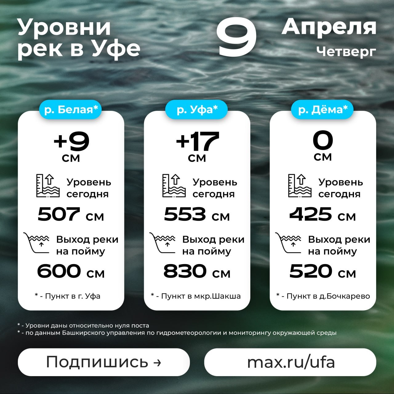Уровни рек в Уфе на 9 апреля.