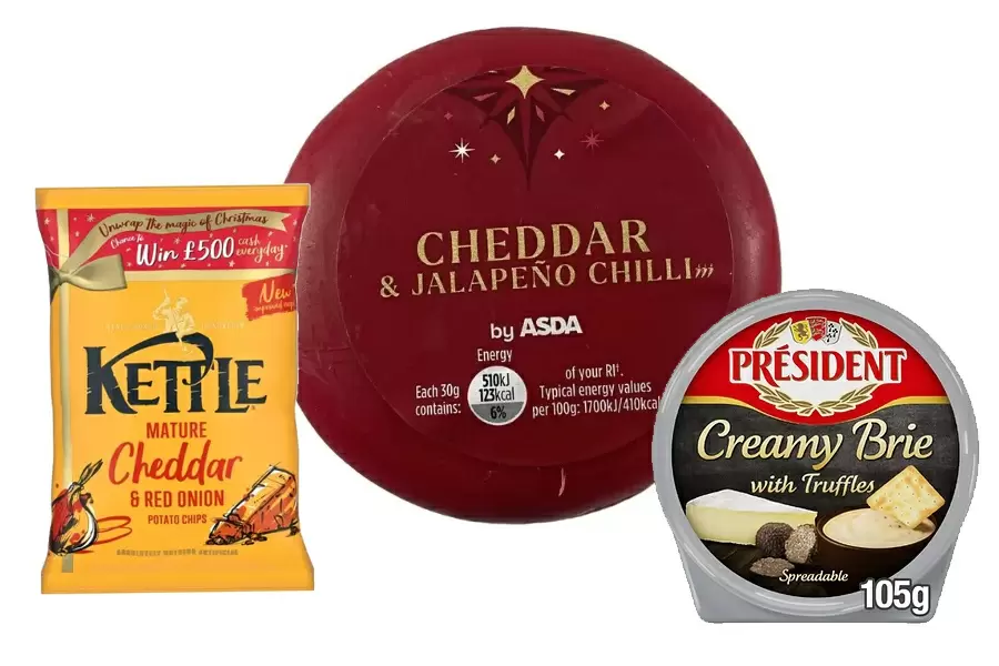 Начнем с сырного ассортимента, который радует потребителей в этот праздничный сезон. Британская компания ASDA предлагает оригинальный чеддер с халапеньо и специями, который сочетает в себе вкусы сушеного чеснока, лука, орегано и фенхеля. Lactalis радует любителей сыра сливочным плавленым продуктом President со вкусом бри и трюфеля, что идеально соответствует трендам на премиум-класс в уходящем году. А компания Kettle представила лимитированную серию картофельных чипсов с выдержанным чеддером и красным луком — просто и изысканно одновременно.