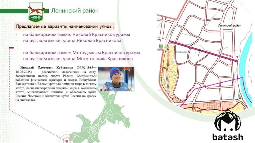 Именем спортсмена, который в 2025-м погиб в аварии под Уфой, хотят назвать улицу в Ленинском районе. В опроснике на сайте администрации — два варианта: "Николая Красникова" и "Мотогонщика Красникова".