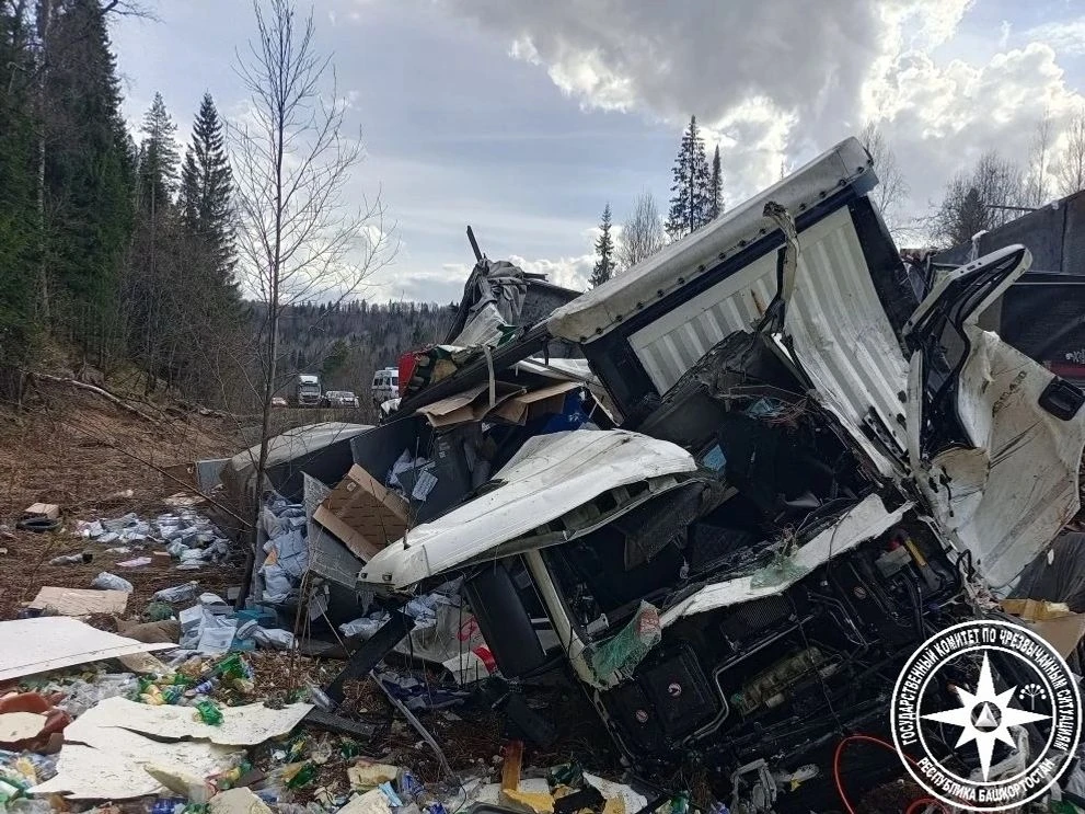 На автодороге Уфа — Инзер — Белорецк 25-летний водитель грузового автомобиля MAN не справился с управлением, опрокинул грузовик и столкнулся со встречным MAN, под управлением 49-летнего водителя.