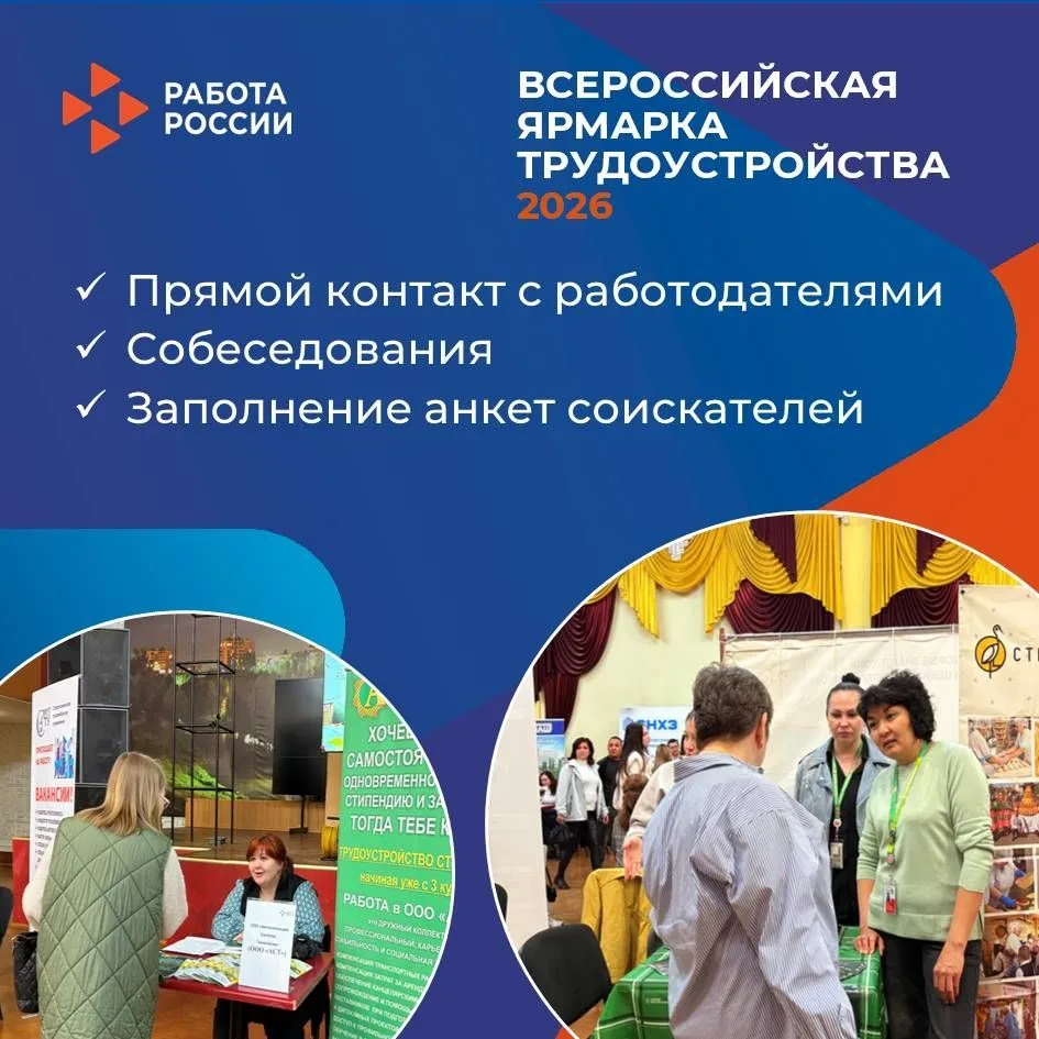 17 апреля состоится региональный этап Всероссийской ярмарки трудоустройства «Работа России. Время возможностей». Она является ключевым мероприятием национального проекта "Кадры".