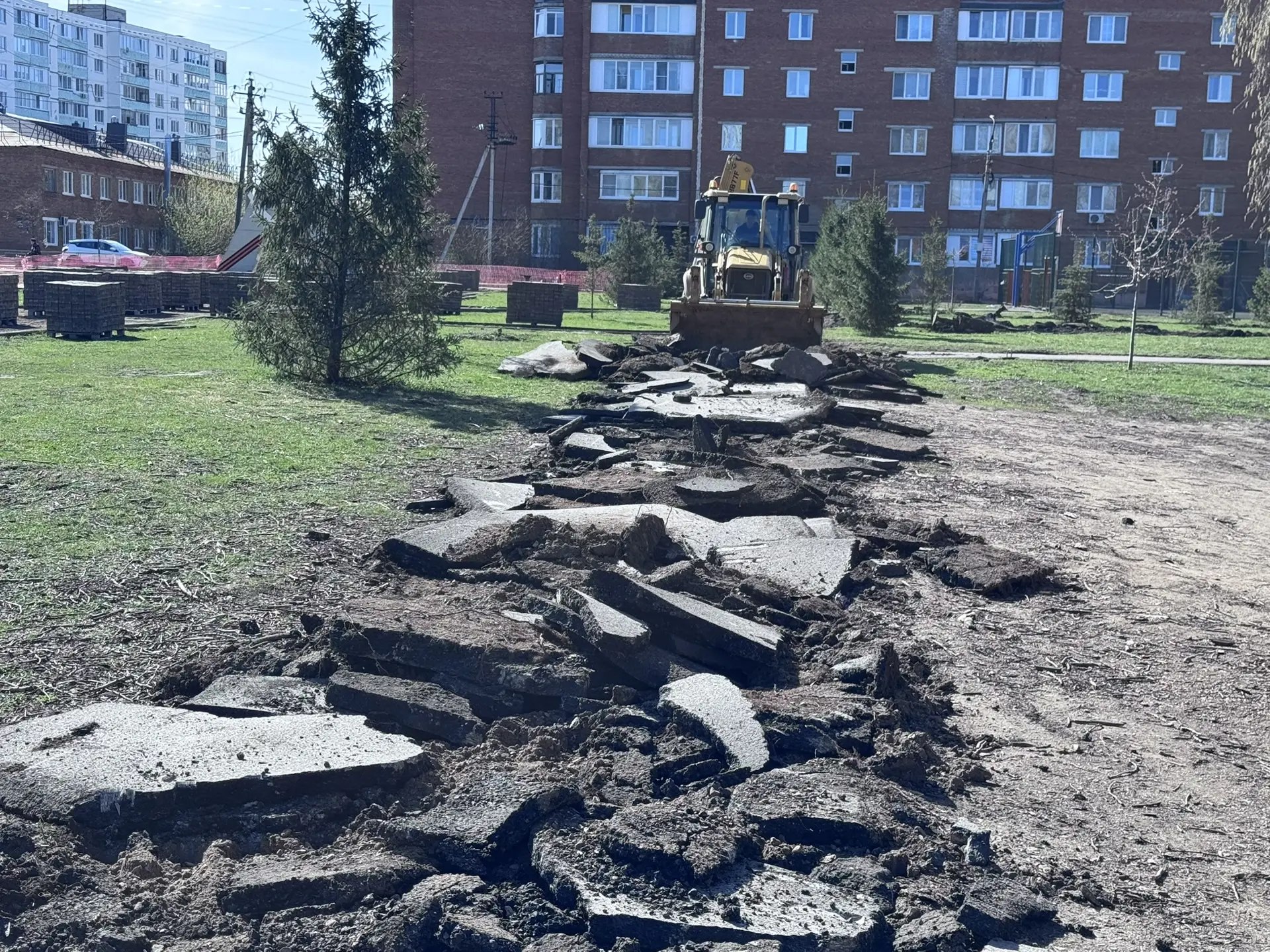 Подрядчик уже приступил к демонтажу старых элементов и покрытия дорожек. В ближайшее время здесь появятся новые пешеходные зоны, детская и спортивная площадки, освещение и места для отдыха.