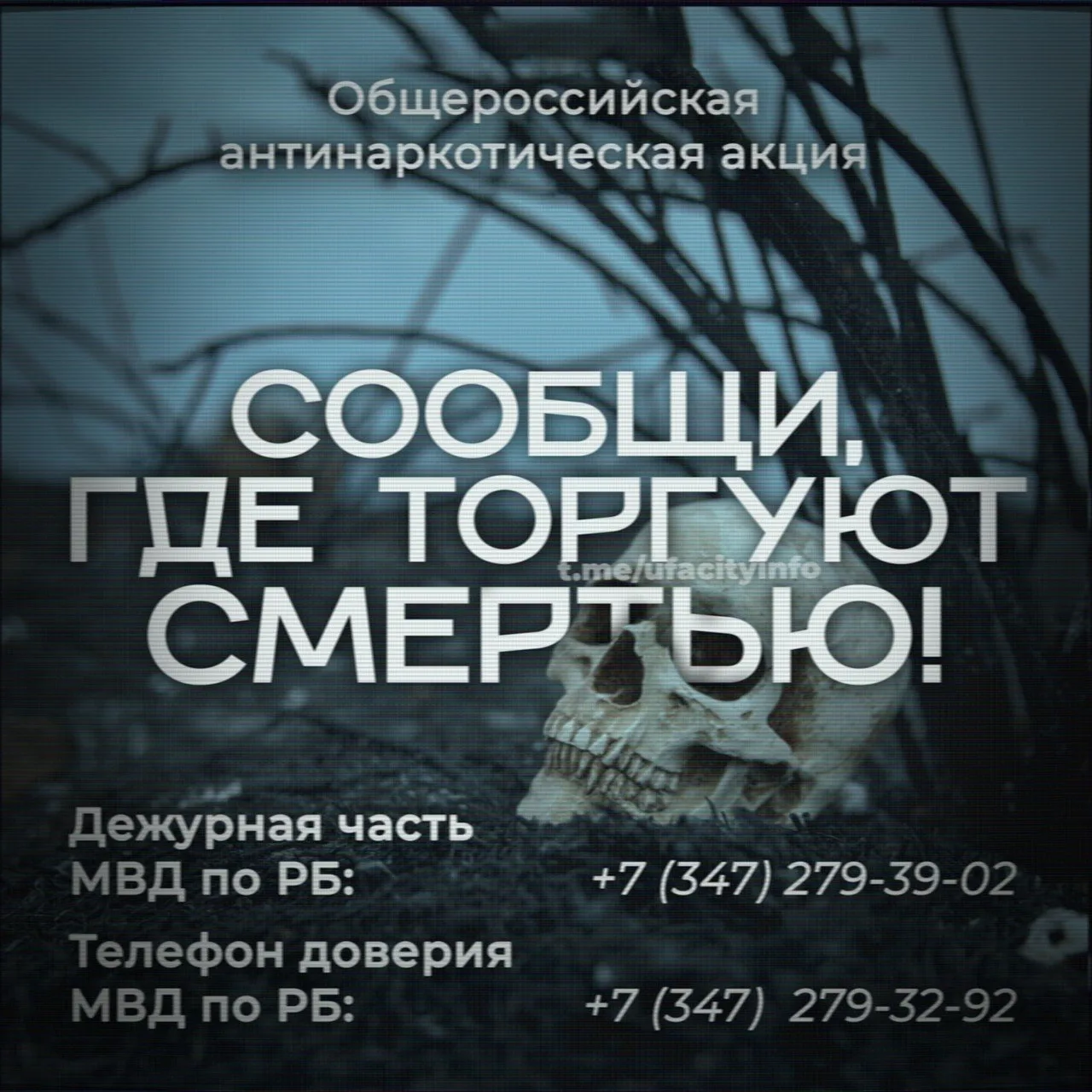 В этот период вы можете сообщить о фактах изготовления, потребления, хранения и сбыта наркотиков, а также о местонахождении притонов по телефону доверия МВД по РБ: +7 (347) 279-32-92