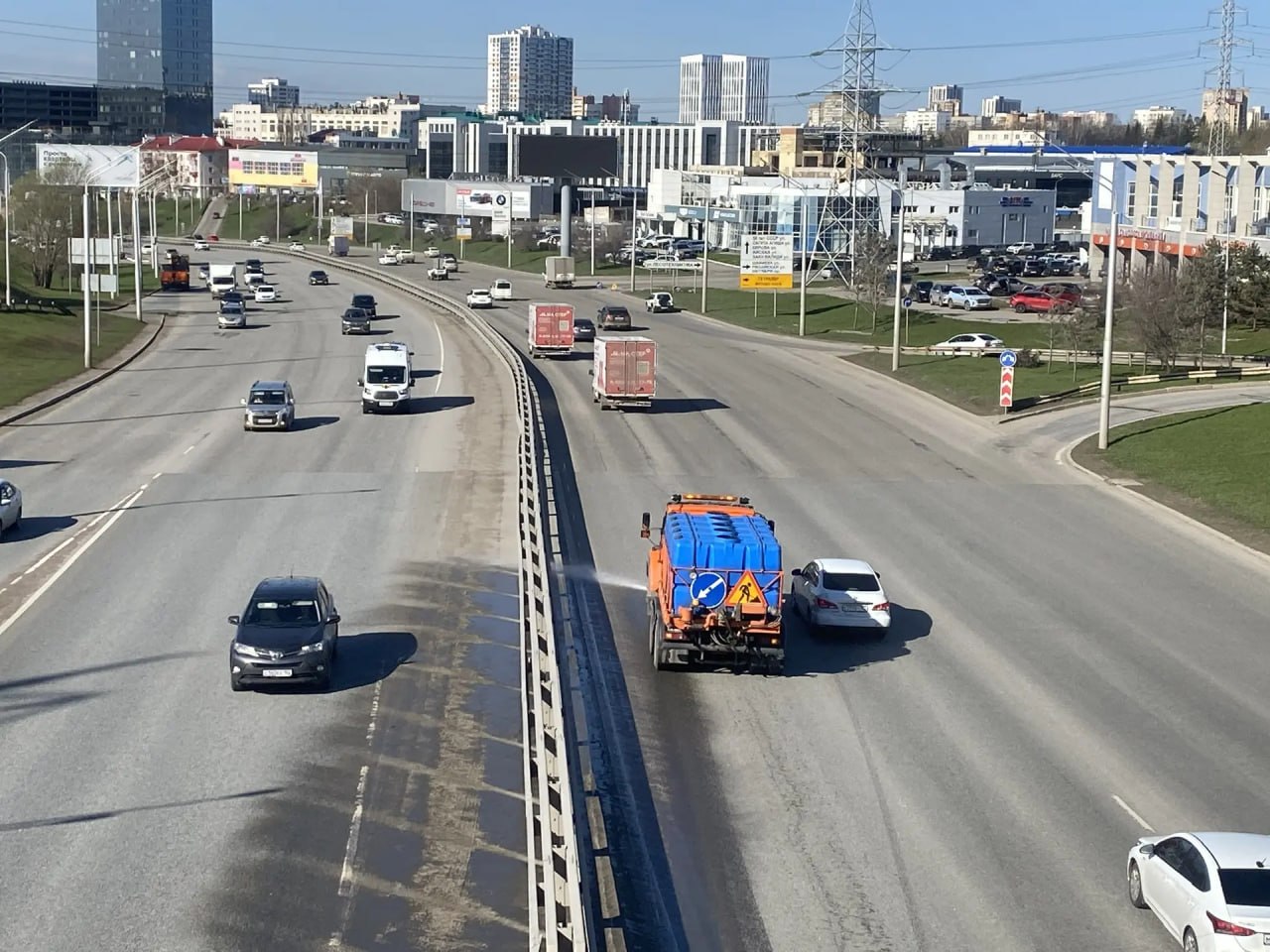 Ежедневно на улицах работают коммунальные службы: проводится очистка прибордюрных частей, мойка дорожного покрытия, подбор мусора, приводят в порядок остановочные павильоны и прилегающие территории. Задействована спецтехника