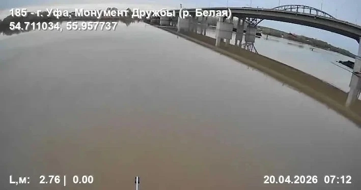 На реке Белой возле монумента Дружбы в Уфе уровень воды за сутки снизился на 30 см. Текущий уровень составляет 278 см.