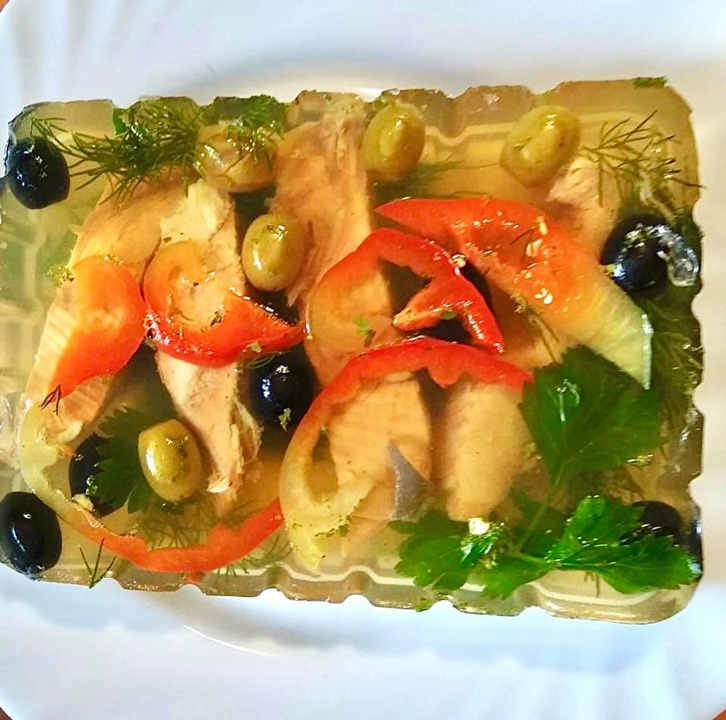 Лёгкое задание — сварить филе до готовности в слегка подсоленной воде, чтобы бульон остался чистым и прозрачным. Затем рыбу нарезать на небольшие кусочки и подготовить яркие акценты: болгарский перец, зелень и оливки добавляют цвет и текстуру.
