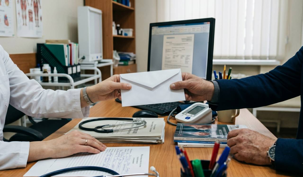 27-летний мужчина передавал деньги врачу, чтобы оформить больничные для знакомого без осмотров и диагнозов.