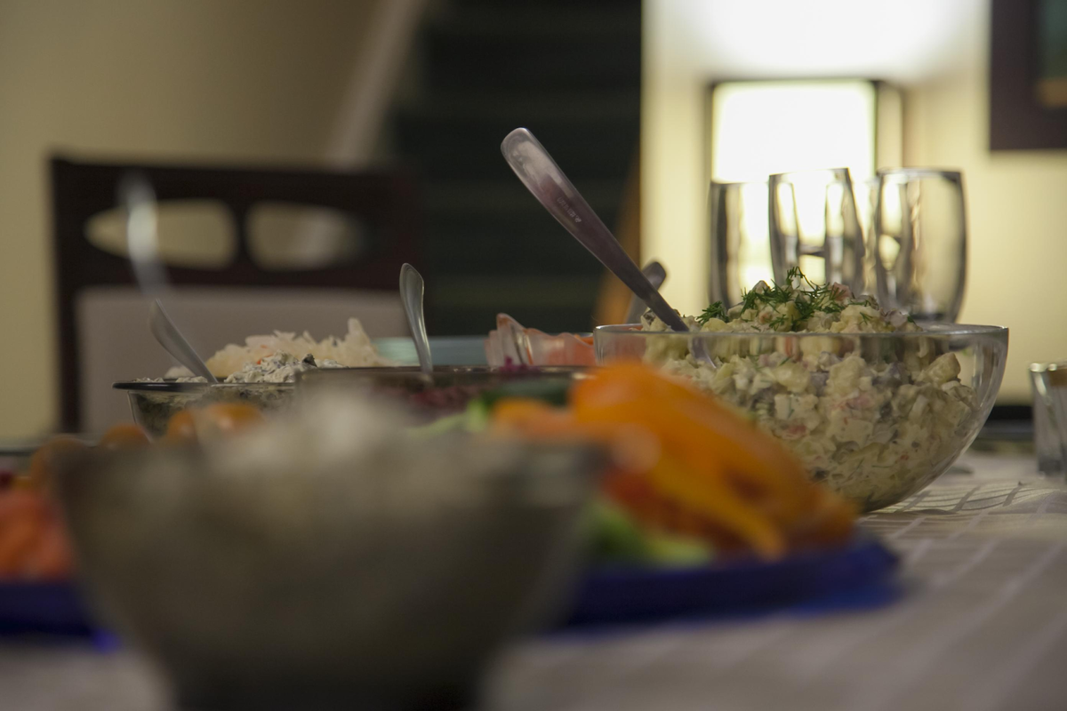 Это классическое блюдо удивляет своим вкусом и нарядным видом. Селёдка под шубой состоит из нескольких слоёв: нежной селёдки, уютного картофеля, моркови, свёклы, укрытых под легким слоем майонеза. Сервировка этого салата в виде торта добавит праздничной эстетики на ваш стол и произведёт впечатление на гостей.