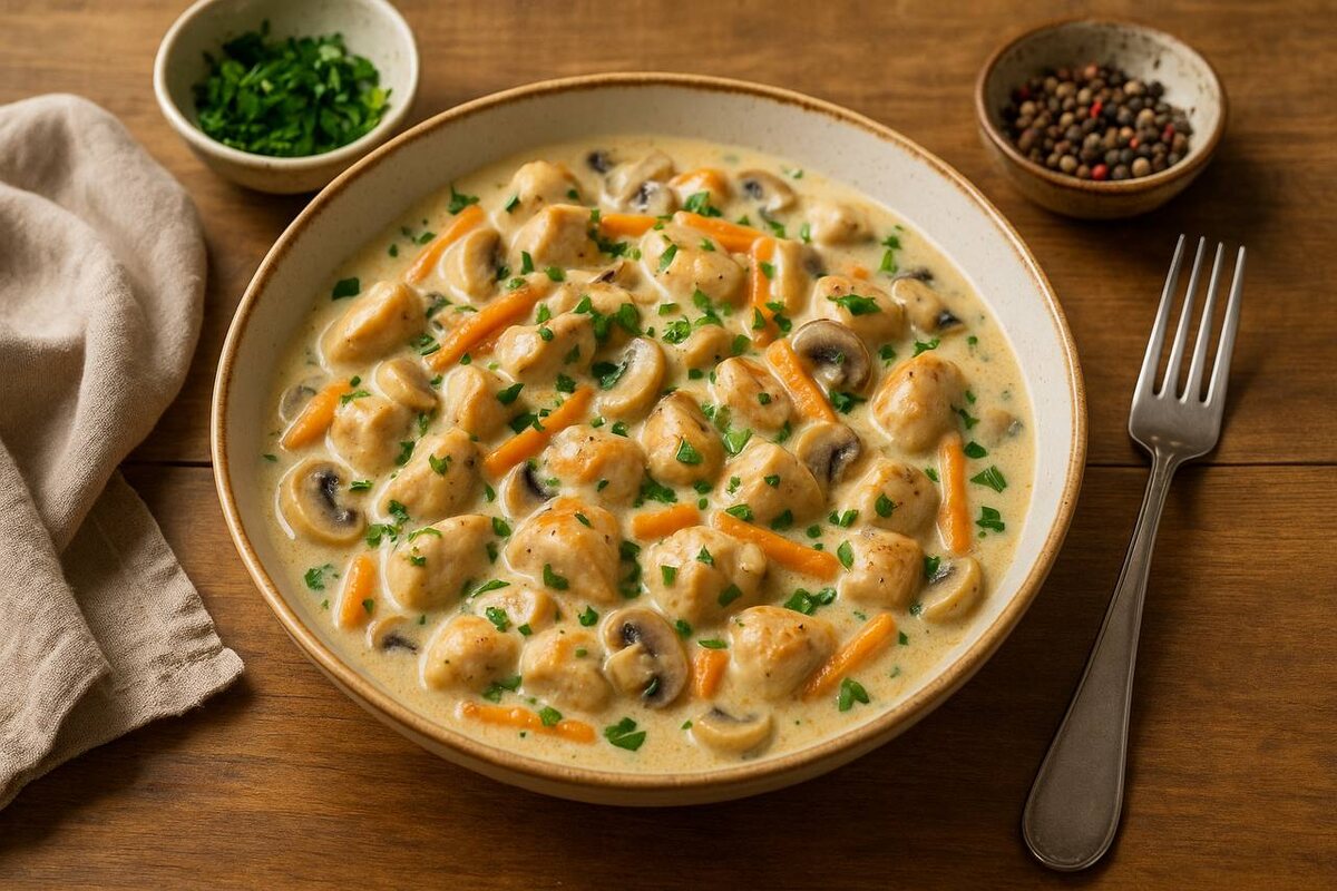 Жаркое — традиционное блюдо, которое всегда радует сытностью. Однако иногда такая тяжесть может вызывать усталость. Альтернативой может стать фрикасе: это легкое, изысканное и замечательное блюдо, способное преобразить любой семейный ужин. Сочетание куриного мяса, свежих овощей и сливочного соуса делает фрикасе вкусным и лёгким, даря ощущения праздника даже в будни.