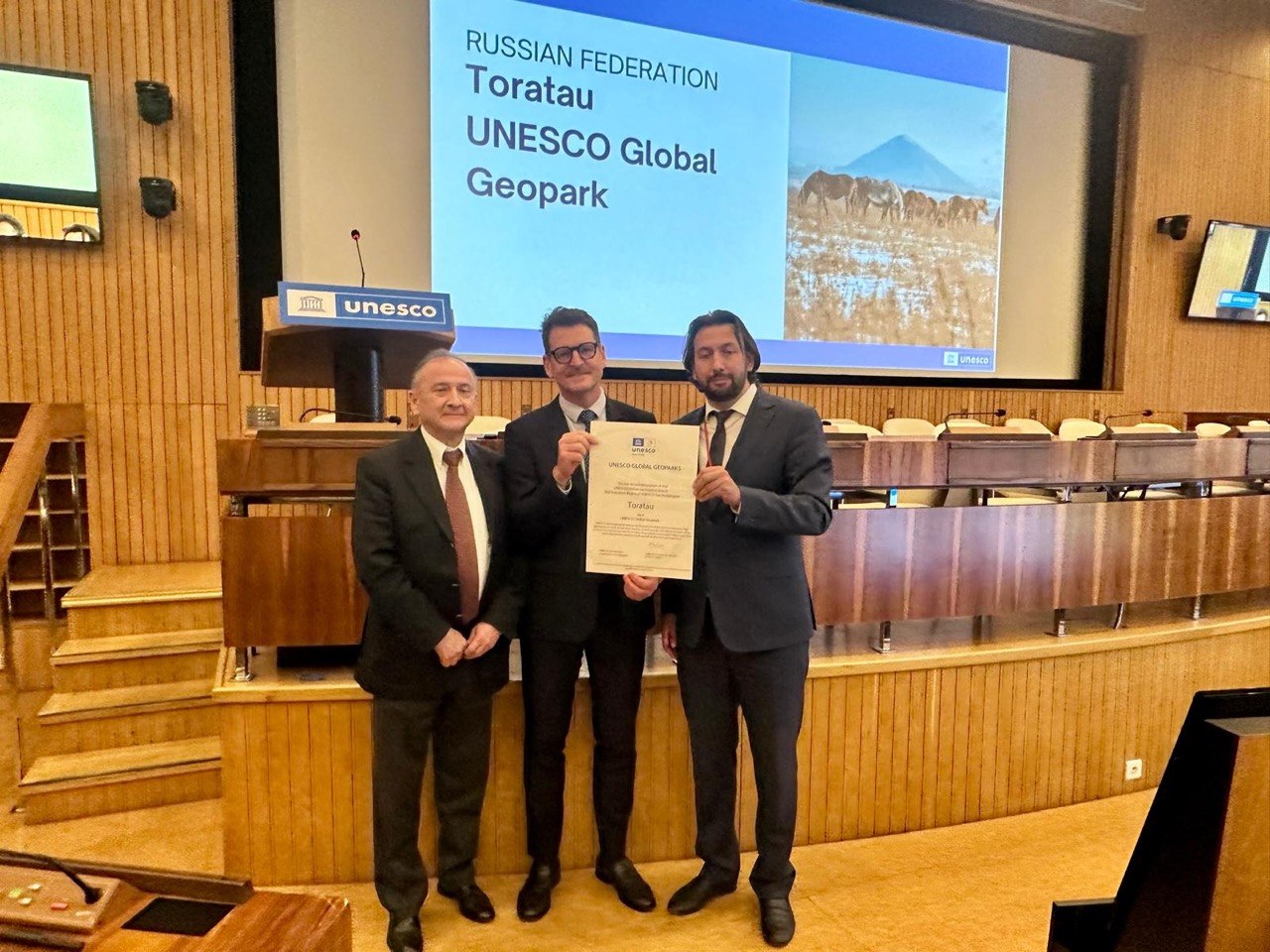 27 апреля в штаб-картире ЮНЕСКО состоялась церемония вручения сертификата о присвоении статуса «Глобального геопарка ЮНЕСКО» геологическому объекту "ТОРАТАУ", расположенному в Республике Башкортостан. Это второй российский геопарк, включенный в Сеть глобальных геопарков ЮНЕСКО.