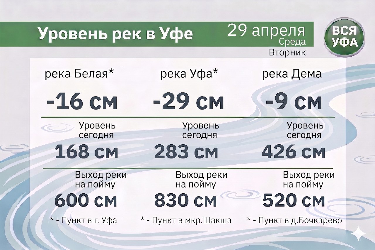 По данным Башгидромета, 29 апреля в Башкирии ожидается преимущественно без осадков, по северо-западу возможны небольшие дожди. Ветер южный, юго-западный умеренный, днем местами порывы до сильного. Температура воздуха днем составит +10, +15...
