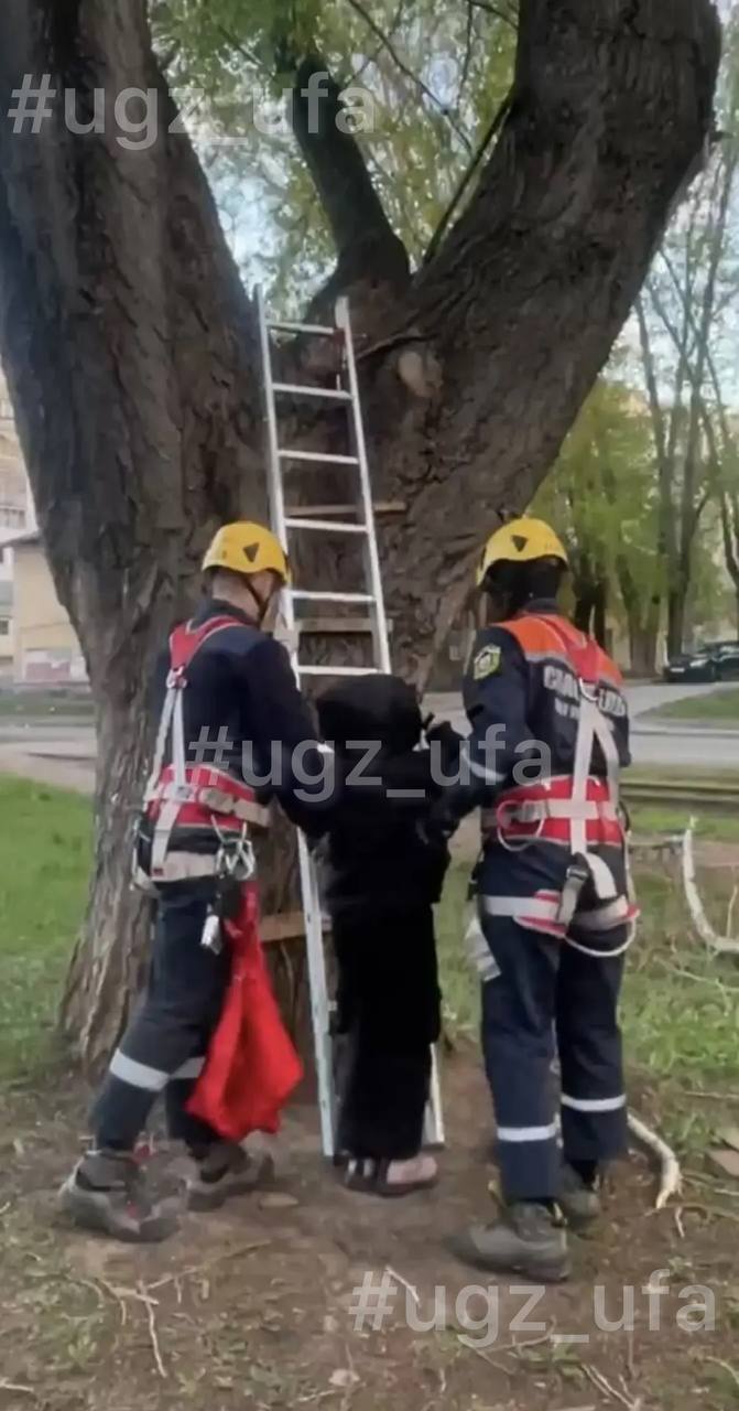 Прибывшие спасатели с помощью раздвижной лестницы благополучно спустили ребёнка.