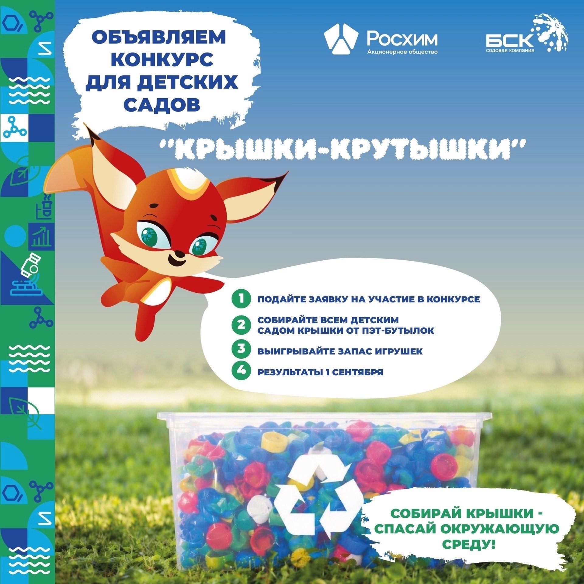 27 апреля — 23 августа — сбор чистых крышек от ПЭТ-бутылок;